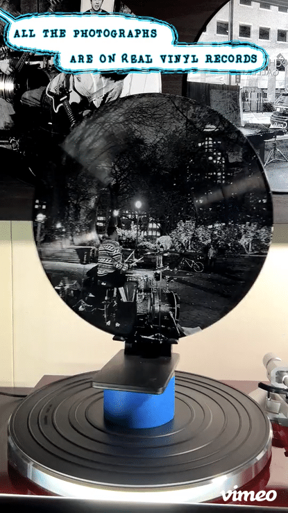 All the photographs are on real up-cycled vinyl records that can be played on the back.